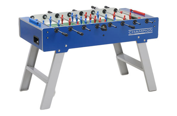Calciobalilla Champion Outdoor Weatherproof Azzurro con Aste Uscenti, Gambe Pieghevoli- biliardino Garlando con 50 Palline
