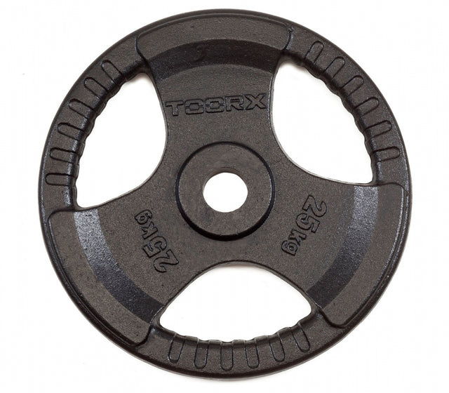 Disco Ghisa Nera - 25 kg. Tri Grip Olimpionico Foro Ø 50 mm. Linea Toorx