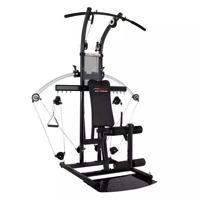Nessun peso, nessun rumore, tanti esercizi: la multi-palestra perfetta per la casa. La Bio Force di FINNLO rivoluziona l'allenamento della forza! Invece dei tradizionali pacchi pesi, Bio Force utilizza una speciale tecnologia di resistenza TNT. Due cilindri riempiti di azoto sul retro della multi-palestra generano fino a 100 kg (2 x 50 kg) di resistenza regolare e uniforme senza fare rumore.