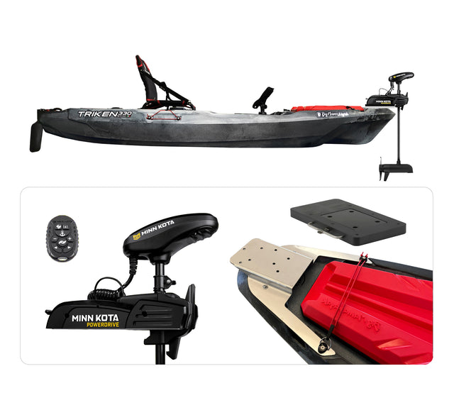BIG MAMA KAYAK A PEDALI TRIKEN 330 con Pulpito Inox + Piastra sgancio rapido + motore POWERDRIVE MINN KOTA 45lb, GPS SPOTLOCK is backordered and will ship as soon as it is back in stock.